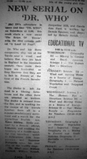 | 03:17, 26 March 2011 | Jam TARDIS.JPG (file) | 65 KB | Jon Preddle | Jamaica TV listings, Daily Gleaner 1966 | 1 | |