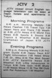 | 00:17, 2 April 2011 | Japan JCTV.JPG (file) | 57 KB | Jon Preddle | Japan listings / Japan Times, 1978 | 1 | |