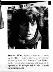 | 00:32, 27 April 2015 | ItalyTomBaker.jpg (file) | 104 KB | Jon Preddle | Radiocorriere, 28 Nov 1981 | 1 | |
