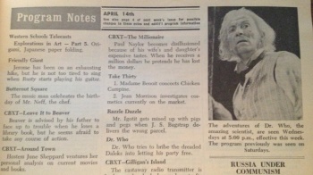 [[File:CFCRWed65.jpg|thumb|right|350px|Series moves to Wednesdays, 5pm, on CFCR, 14 April 1965; Cariboo Observer]]