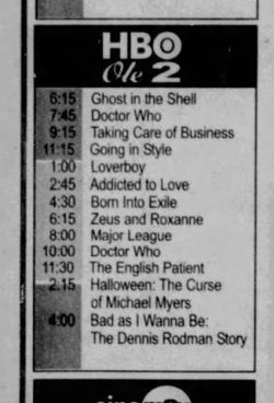 [[File:TVM on HBO Feb 1999 B.jpg|right|thumb|250px|Panama listings for TV Movie on HBO Olé 2; at 7.45am and again at 10pm; La Prensa, 29 May 1999]]