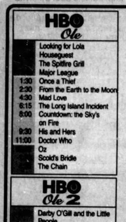 [[File:TVM on HBO Feb 1999.jpg|right|thumb|250px|Panama listing for TV Movie on HBO Olé at 11pm; La Prensa, 19 February 1999]]