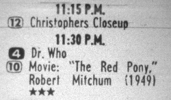 - 2 October 1978: Aired Doctor Who from 2 October, playing the series weeknights - often out of sequence - for at least THREE runs into the early 1980s, before dropping the series when the station changed into a Spanish language station.
