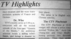 [[File:China GOTD.JPG|thumb|right|250px|TV Highlights: Genesis of the Daleks]]