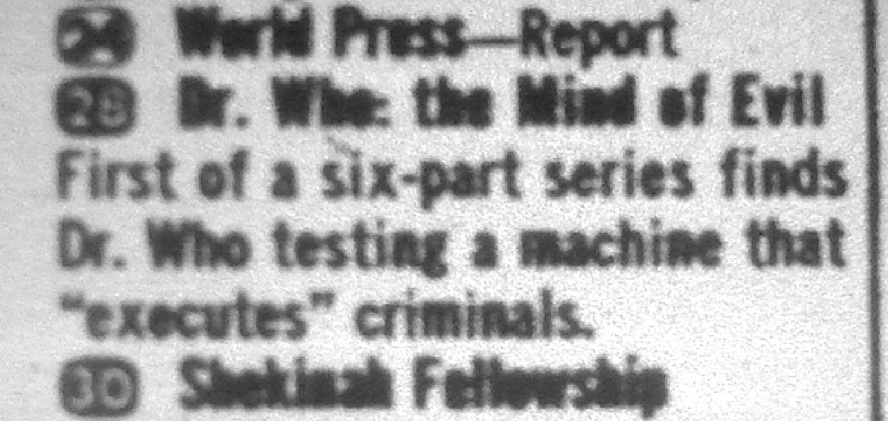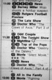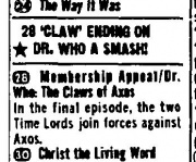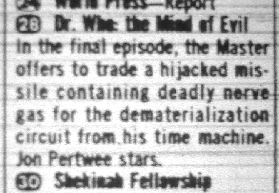 | 23:57, 21 January 2011 | WTTW EEE 4.JPG (file) | 43 KB | Jon Preddle | Chicago Tribune, Terror of the Autons 4, Oct 75 | 1 | |
