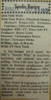 | 22:19, 21 January 2011 | Variety Review 25 Oct 78.JPG (file) | 51 KB | Jon Preddle | Review of WOR screenings, Variety magazine, 25 October 1978 | 1 | |