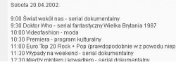 (An unofficial site by fans of Polonia 1 has quite an extensive online "archive" of material, including lists and examples of daily schedules of the various programmes the station aired over the years (see POLONIA 1), but despite our searching for references to Doctor Who or Doktor Who, none could be found. Of course, not being able to read Polish doesn't exactly help...)