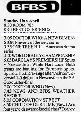 The Christopher Eccleston episodes of the new series of Doctor Who were available on the BFBS Germany and BFBS Navy services soon after the UK transmissions - the final episode of Series 1, "The Parting of the Ways", aired on 23 July 2005, with a repeat in October. The service's station had been renamed BFBS-1 a few years earlier.