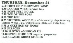 On Saturday, 24 December 1988, Doctor Who aired from 7.40pm. This would be Season 25. No story title was given. The following week, 31 December, the series aired at the earlier time of 6pm.