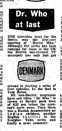Denmark was about the 49th country to screen Doctor Who; it was the third in Europe (see Selling Doctor Who).