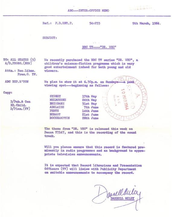 ABC memo dated 9 March 1964