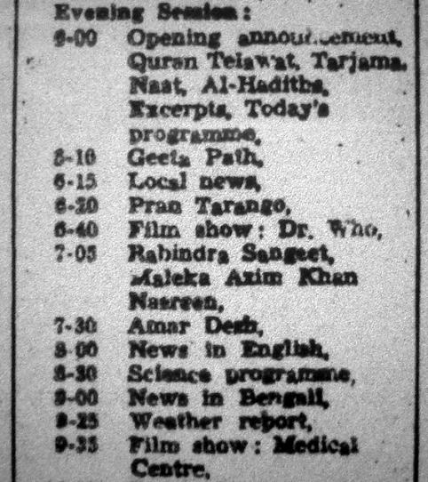 Bangladesh Times / Observer TV listings 1980