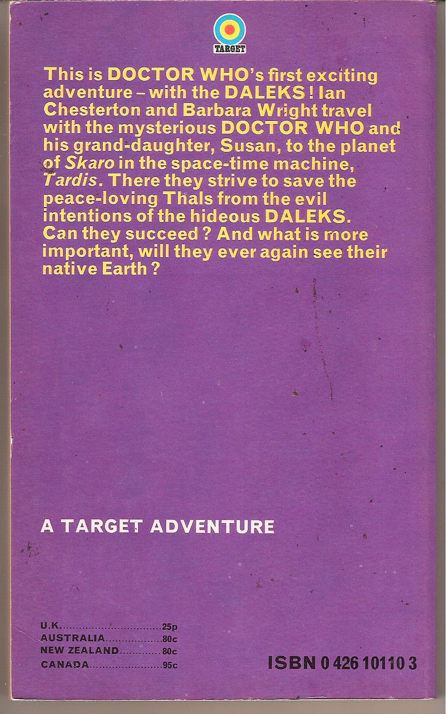 current21:46, 13 April 2015Thumbnail for version as of 21:46, 13 April 2015907 × 1,452 (354 KB)Jon Preddle (talk | contribs)Target novel The Daleks, Canadian price