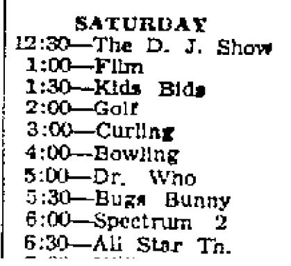 | current | 04:48, 22 April 2011 | 419 × 383 (32 KB) | Jon Preddle (talk | contribs) | Winnipeg Free Press, TV Listings 1965 |