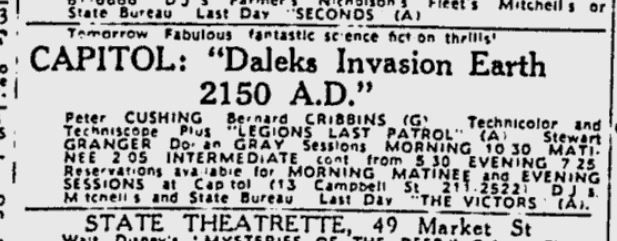 DalekInvasion listing Sydney Morning Herald 14 Dec 1967