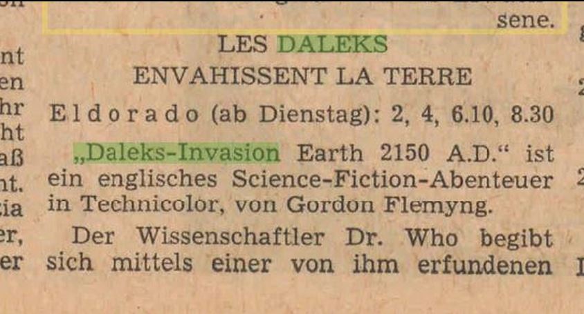 Dalek Invason Earth 2150 Ad in Luxemburger Wort, 24 Oct 1969