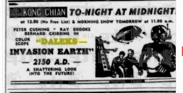 current04:04, 3 June 2018Thumbnail for version as of 04:04, 3 June 2018629 × 321 (55 KB)Jon Preddle (talk | contribs)Daleks Invasion Earth, Singapore Times July 1972