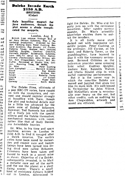 Variety review of Daleks' Invasion Earth: 2150 A.D.