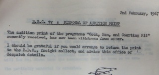 current02:56, 31 January 2016Thumbnail for version as of 02:56, 31 January 20161,001 × 474 (106 KB)Jon Preddle (talk | contribs)Audition Print memo: 2 Feb 1967
