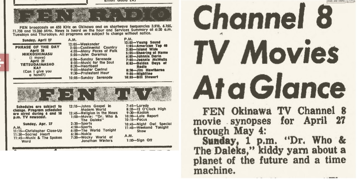 Dr Who and the Daleks FEN TV 27 April 1875, Stars and Stripes