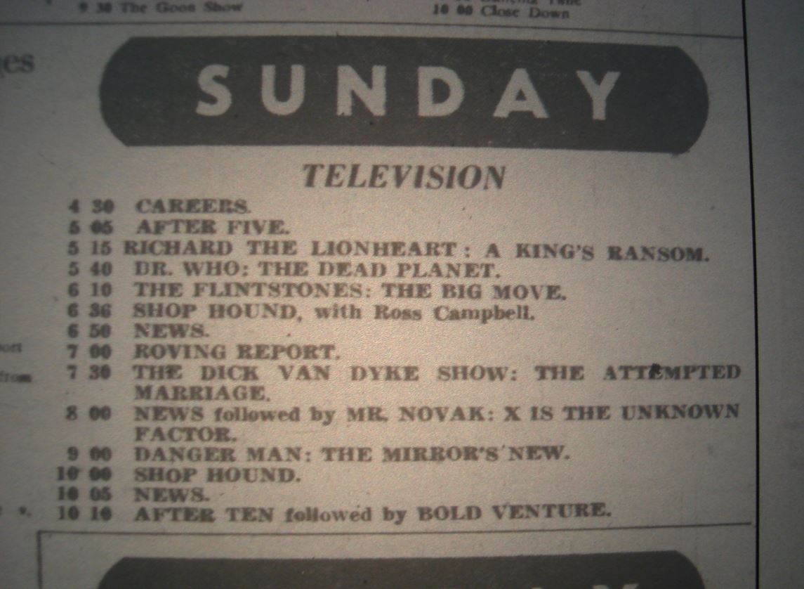 Listing for The Daleks ep1, Rhodesia Herald, 24 Oct 1965