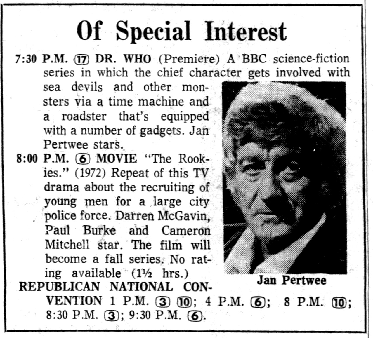 | 21:34, 21 January 2011 | 699 × 667 (79 KB) | Jon Preddle (talk | contribs) | Philadelphia Inquirer, Monday Highlights, 21 August 1972 |
