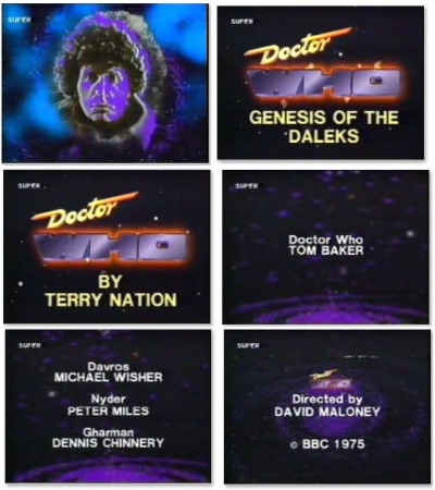 Super Channel replacement credits in 1987 for Genesis of the Daleks with Sylvester McCoy title sequence and logo