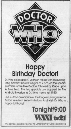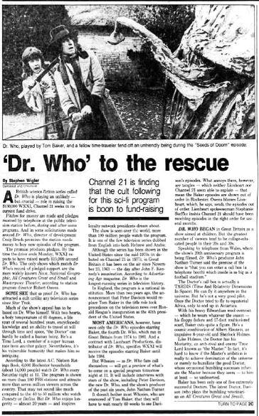 Doctor Who Festival in Rochester, featuring Colin Baker (Syracuse Herald-Journal, Oct. 10, 1985)