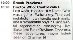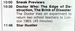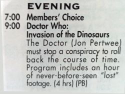 - 20 January 1985: The partial Jon Pertwee package begins. A viewer complains that episodes are being shown out of order.