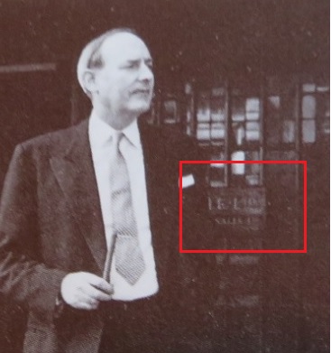 David Stirling outside TIE's offices in Sloane St, circa 1970 (His left arm partially obscures what looks to be the company names "TIE Ltd" and "TIE Sales Ltd" on the door plate)