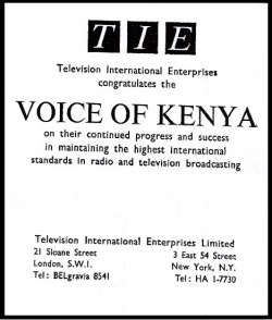 The first television station that TIE helped create was that of Kenya, although the second station, in Nigeria, actually went to air first! It was reported in the 26 December 1962 edition of Variety magazine (see right) that by the end of 1963, only four years after it had been established, TIE Ltd would have representation for a total of eight commercial TV stations.