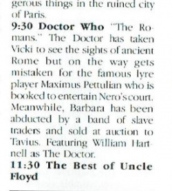 • Compilation: The Doctor encounters the infamous Emperor Nero when the Tardis materializes in Rome, circa A.D. 64.