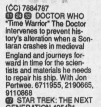 - Compilation: The crash-landing of an alien spaceship begins an adventure that traps Doctor Who and Sarah in the Middle Ages.