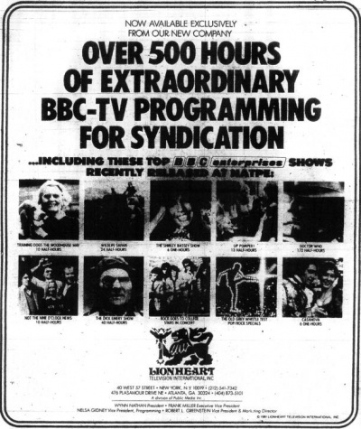 - By 6 May 1981, Lionheart Television International Inc had been formed by several ex-senior-executives from Time-Life Television. The company is co-owned by Western-World Television Inc (49%), Public Media Inc (49%), and the BBC (2%). Lionheart formally takes over from Time-Life Television as US distributor of BBC programmes. (Western-World assumes the distribution to Latin America, effective from 1 April 1981.)