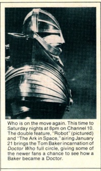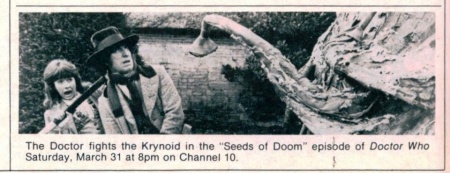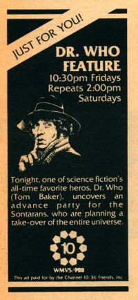 - 25 March 1983: Begins airing the Tom Baker stories, Friday nights at 10:30 with a Saturday afternoon repeat at 2:00.