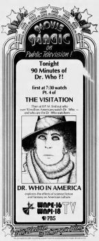 • 27 November 1984: The documentary Dr. Who in America is screened, following part 4 of The Visitation (see clipping below).