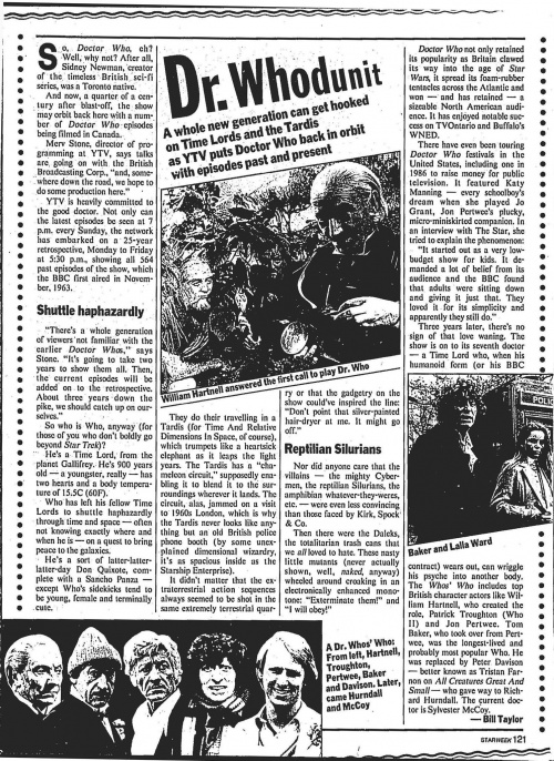 Print ad from Starweek 7 October 1989 for the start of the YTV Hartnell repeats