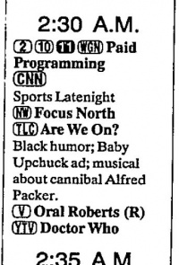 From Tuesday, 8 September 1992, the slot was moved to 2.30am, where it was the final programme to screen prior to the station closing down for the broadcast 'day'. It remained in this graveyard slot for the next two years - but more on this later…