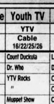Generic listing for Dr Who on YTV at 5.30pm, Canadian newspaper, 1989